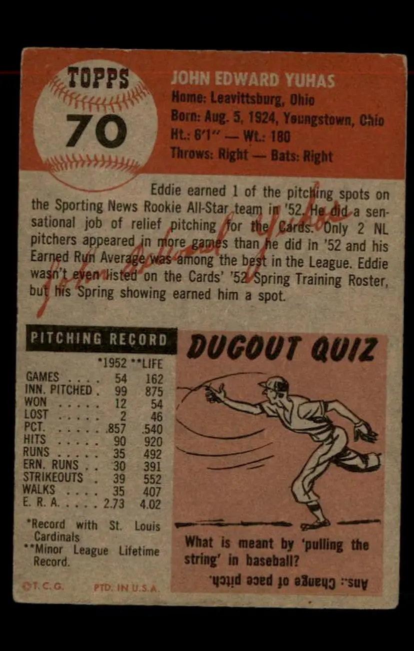 1953 Topps #70 Ed Yuhas - (pk-tl1) - St. Louis Cardinals