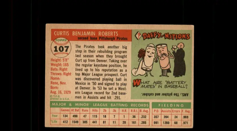 1955 Topps #107 Curt Roberts - (pk-tl1) - Pittsburgh Pirates