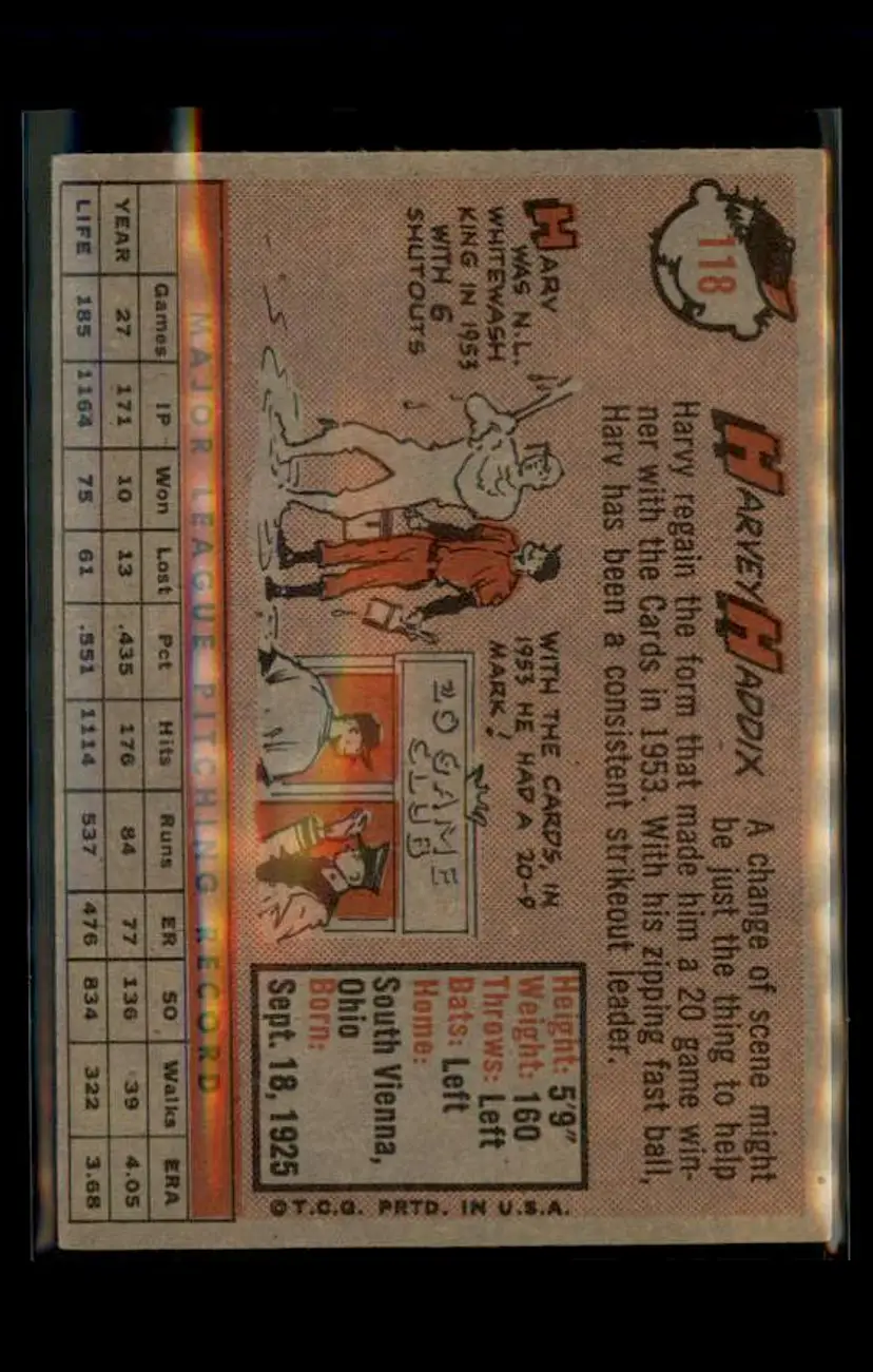 1958 Topps #118 Harvey Haddix - (pk4) - Cincinnati Redlegs