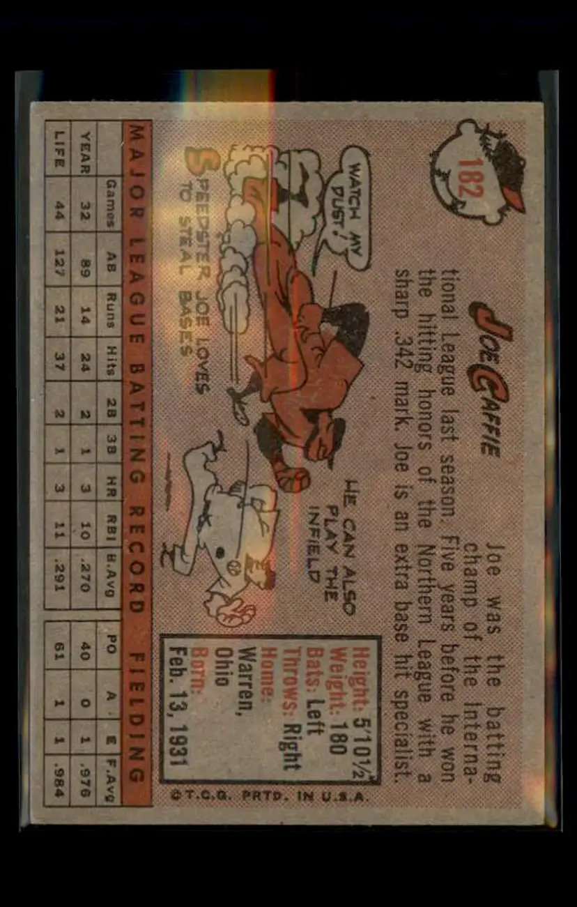 1958 Topps #182 Joe Caffie - (pk4) - Cleveland Indians