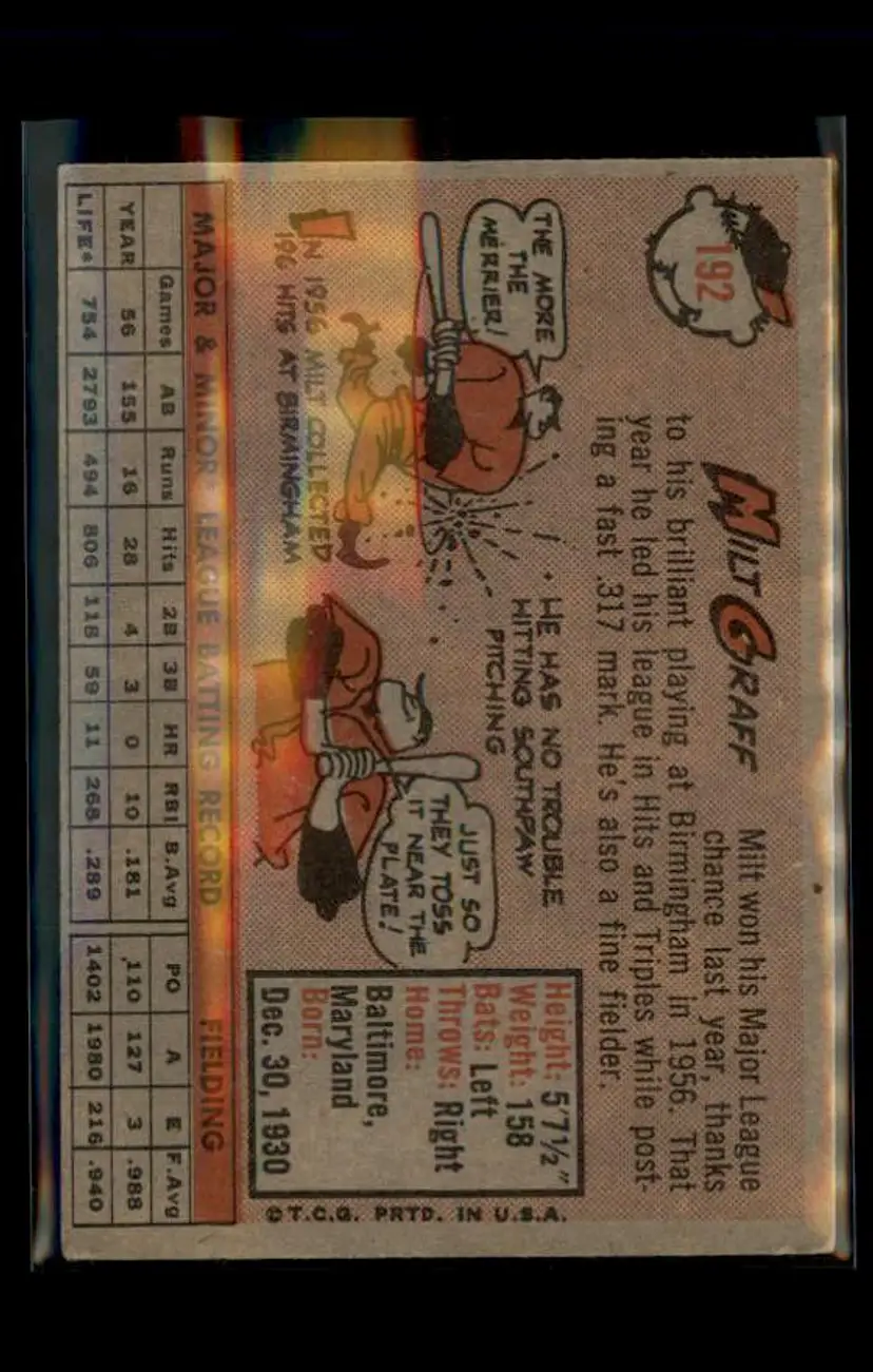 1958 Topps #192 Milt Graff - (pk4) - Kansas City Athletics