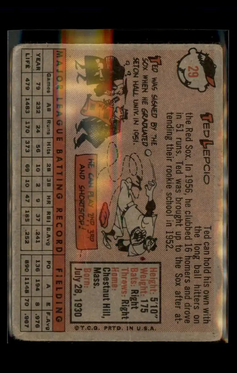 1958 Topps #29 Ted Lepcio - (pk4) - Boston Red Sox