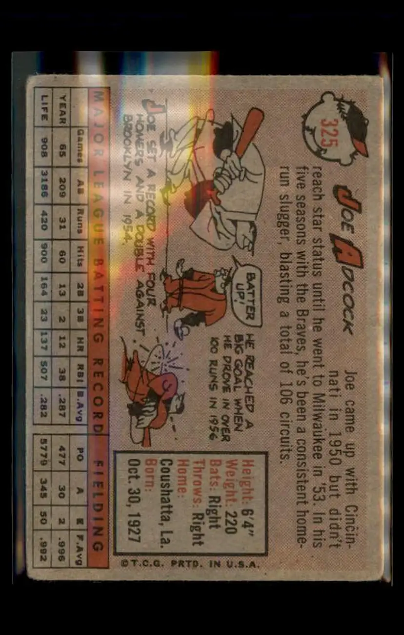 1958 Topps #325 Joe Adcock - (pk4) - Milwaukee Braves