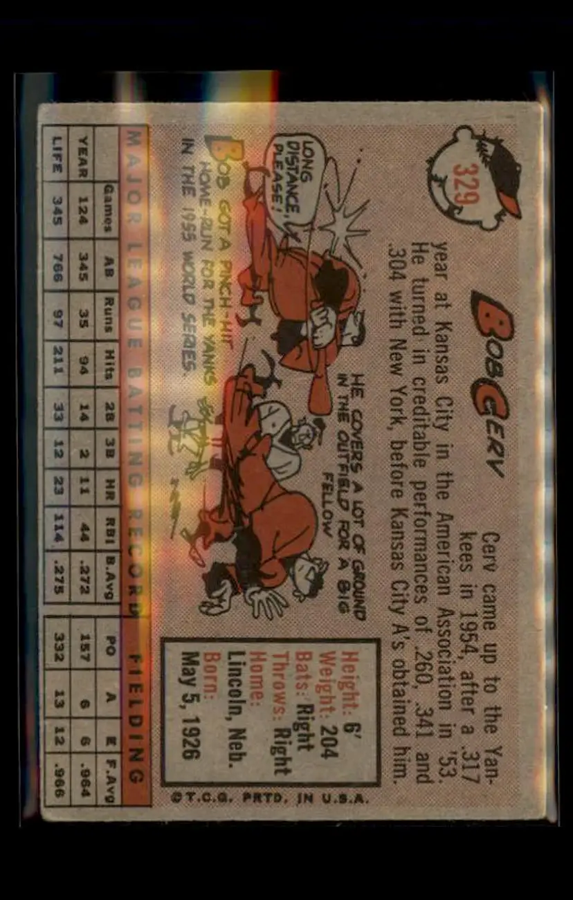 1958 Topps #329 Bob Cerv - (pk4) - Kansas City Athletics