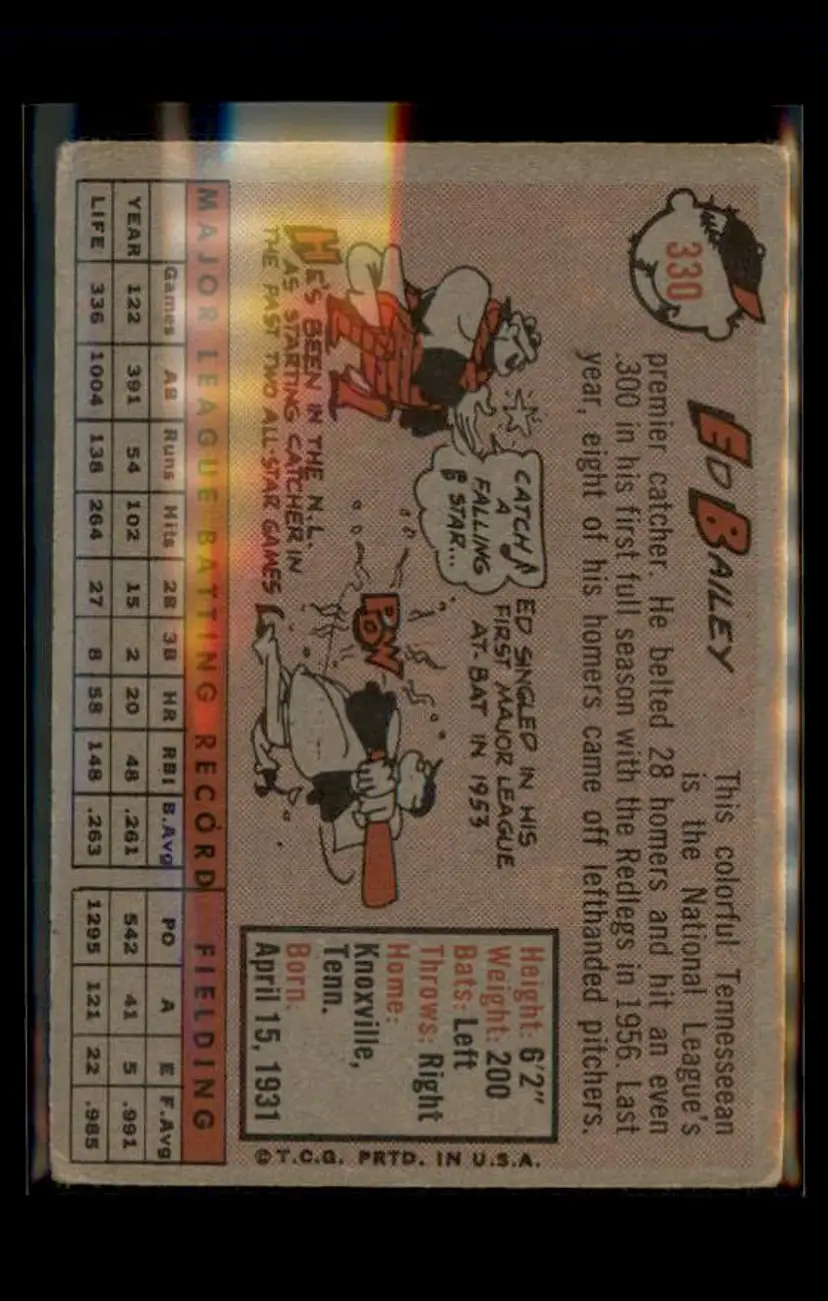 1958 Topps #330 Ed Bailey - (pk4) - Cincinnati Redlegs