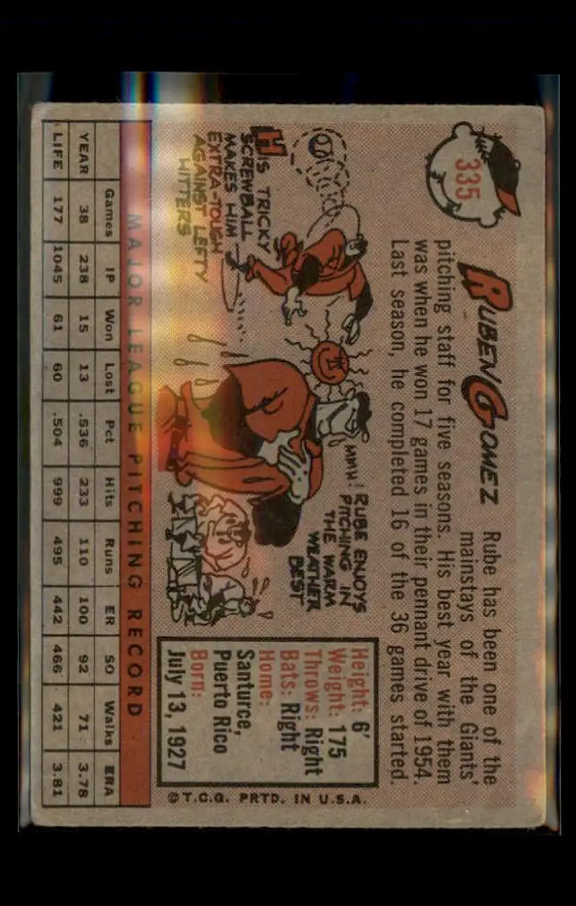 1958 Topps #335 Ruben Gomez - (pk4) - San Francisco Giants