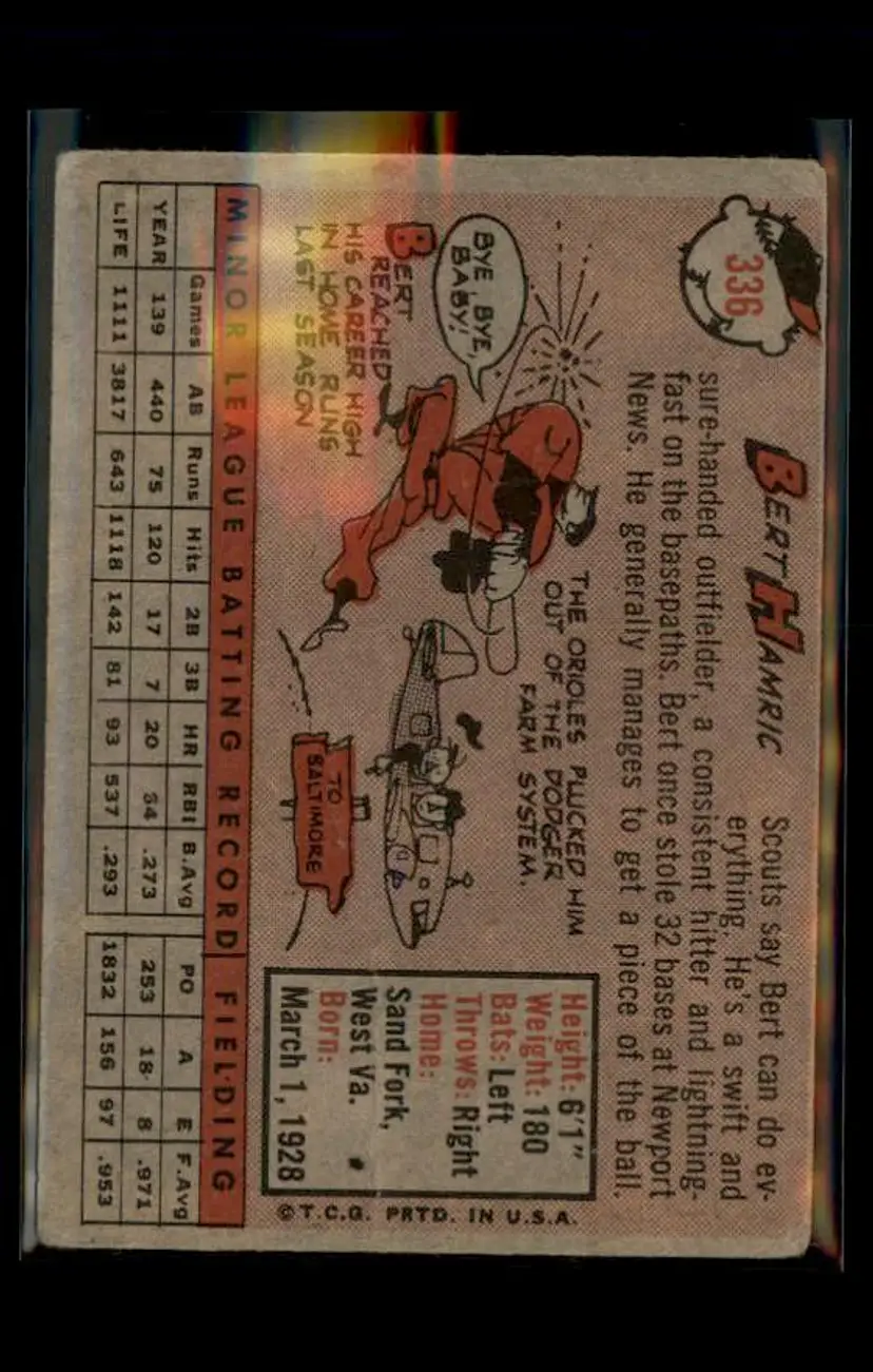 1958 Topps #336 Bert Hamric - (pk4) - Baltimore Orioles