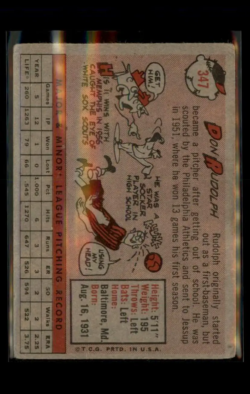 1958 Topps #347 Don Rudolph - (pk4) - Chicago White Sox
