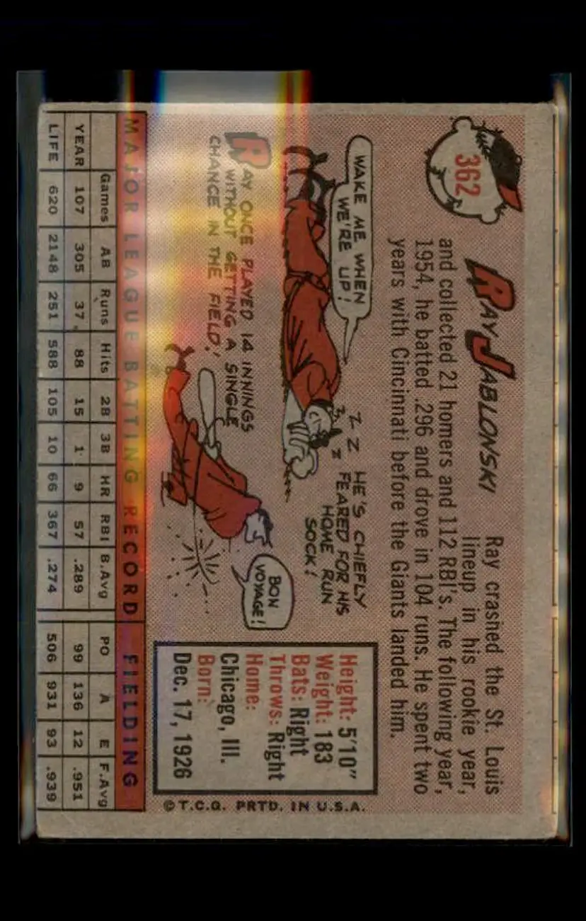 1958 Topps #362 Ray Jablonski - (pk4) - San Francisco Giants