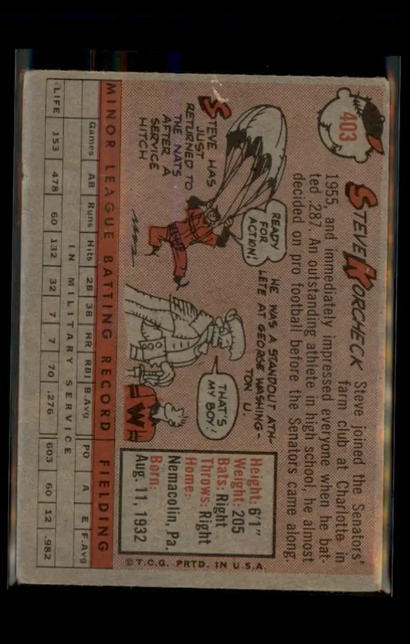 1958 Topps #403 Steve Korcheck - (pk4) - Washington Senators