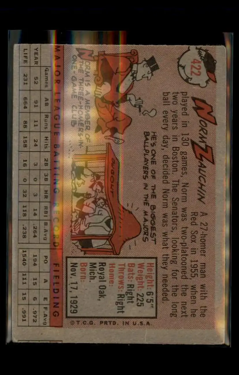 1958 Topps #422 Norm Zauchin - (pk4) - Washington Senators