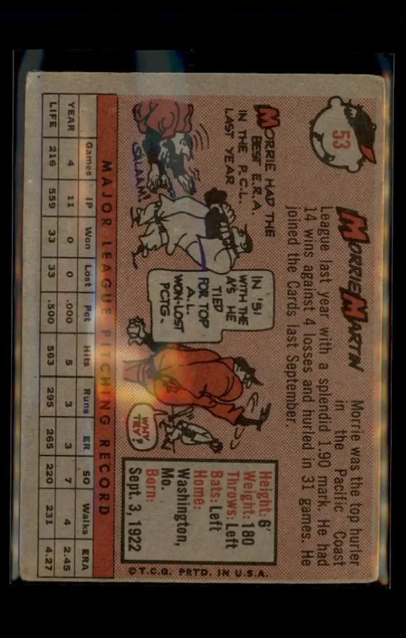 1958 Topps #53a Morrie Martin - (pk4) - St. Louis Cardinals