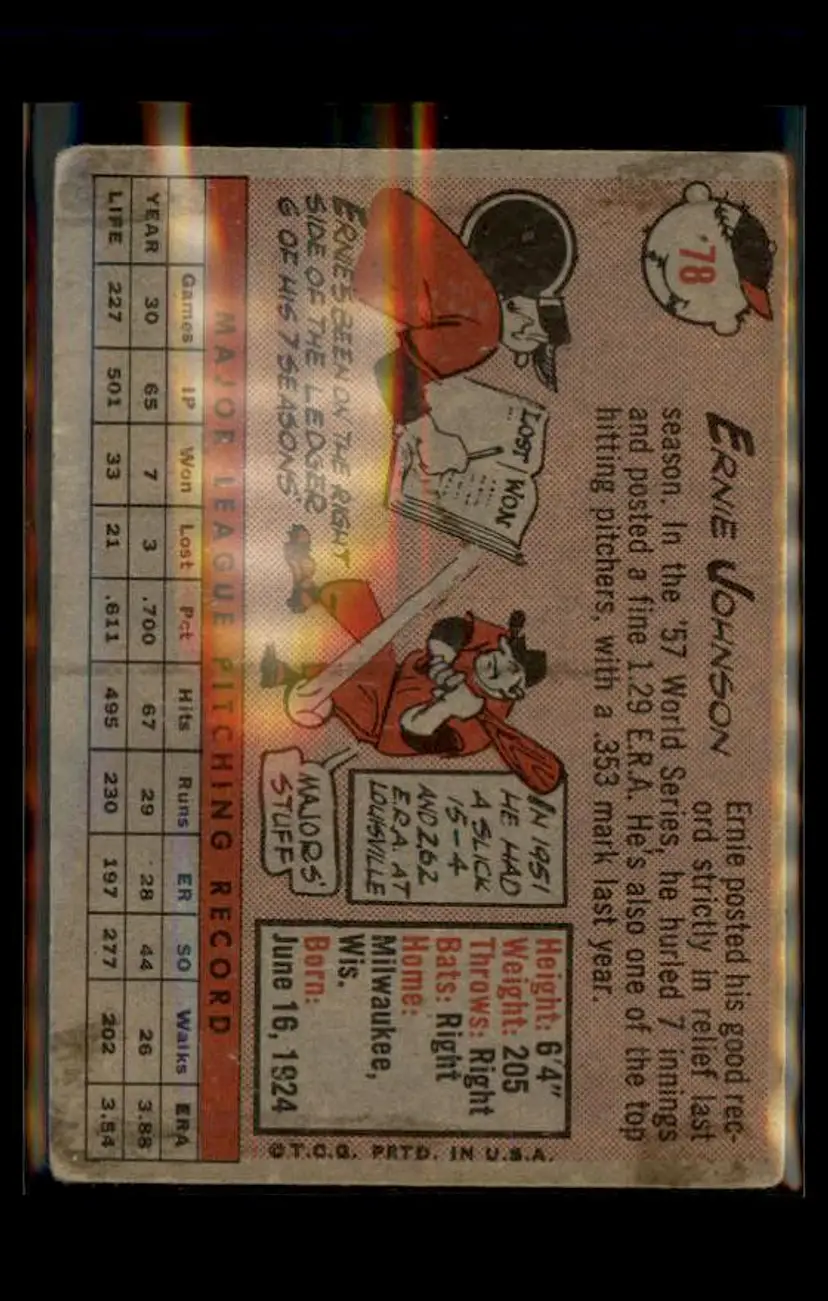 1958 Topps #78a Ernie Johnson - (pk4) - Milwaukee Braves
