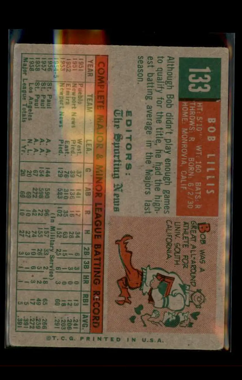 1959 Topps #133 Bob Lillis - (pk4) - Los Angeles Dodgers