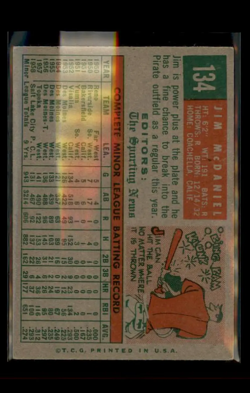 1959 Topps #134 Jim McDaniel - (pk4) - Pittsburgh Pirates