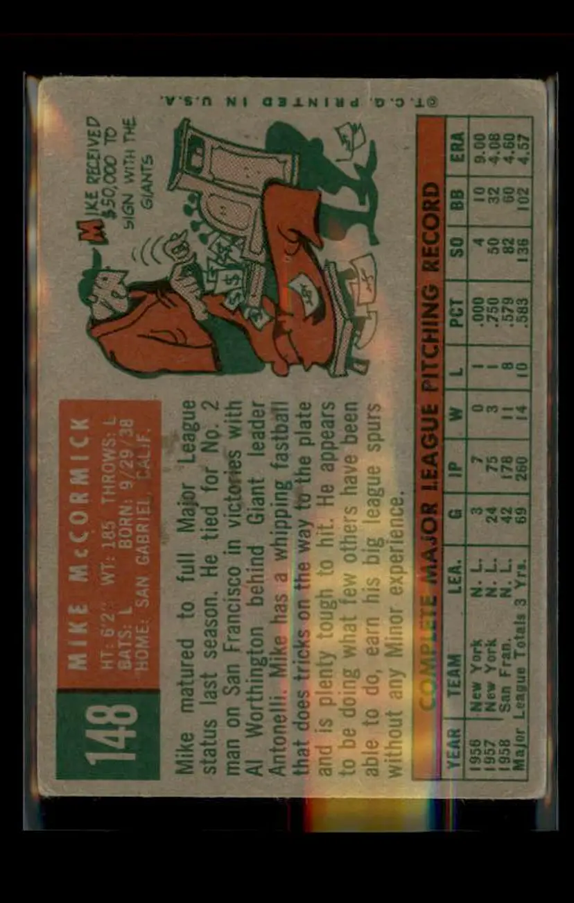 1959 Topps #148 Mike McCormick - (pk4) - San Francisco Giants