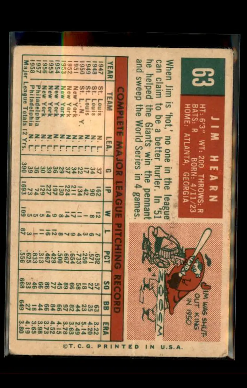 1959 Topps #63 Jim Hearn - (pk4) - Philadelphia Phillies