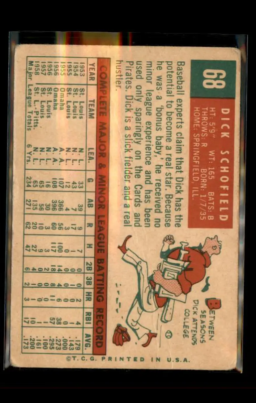 1959 Topps #68 Dick Schofield - (pk4) - Pittsburgh Pirates