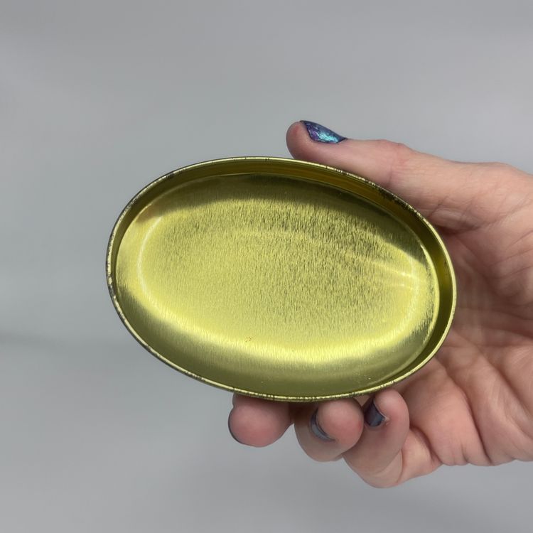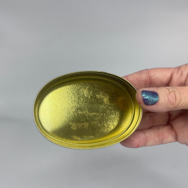 Nice condition - opens and closes nicely but has tight hold. A few minor scrapes Measures: 3.5"x1"