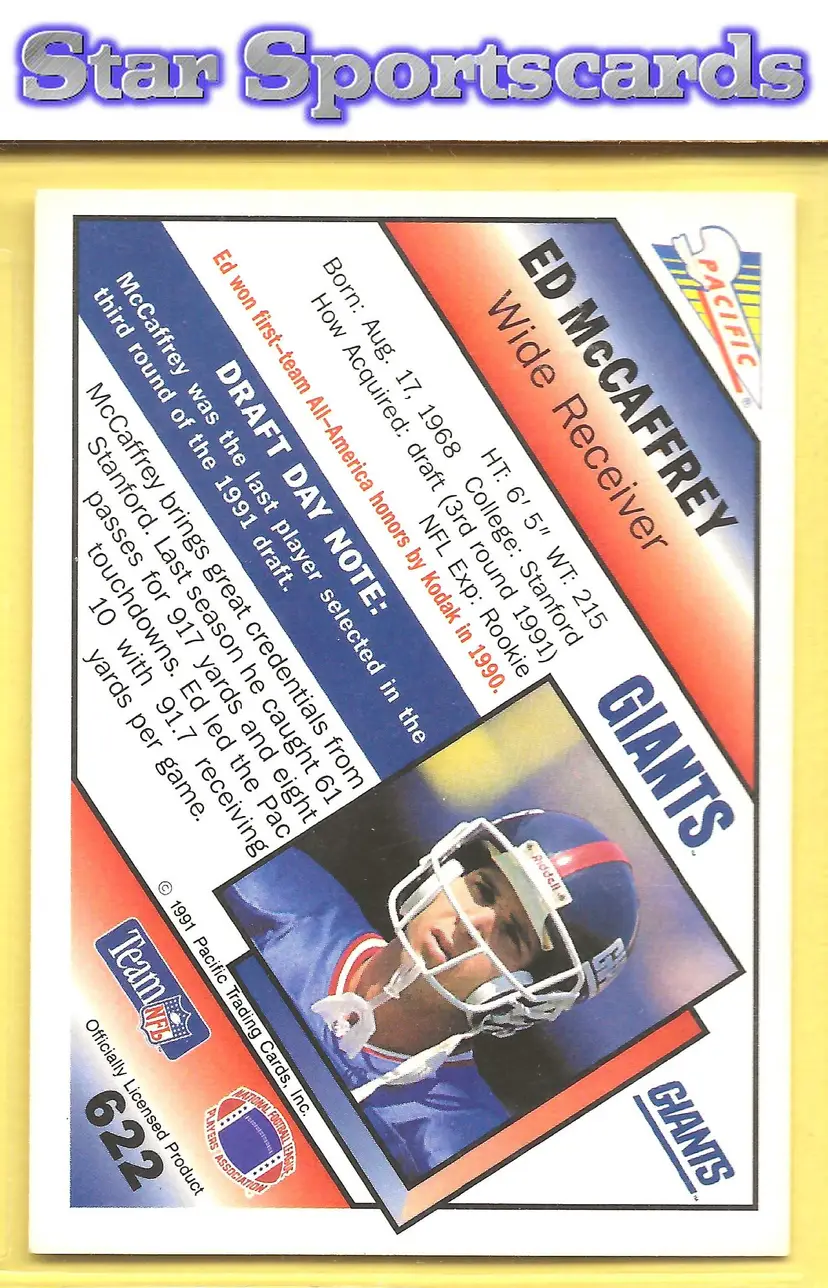 This is a nice example of a 1991 Pacific #622 Ed McCaffrey .Other important information about this card: RC Rookie In Ed McCaffrey played for the New York Giants.Please check out our other listings for more great cards.