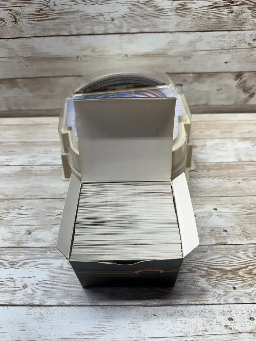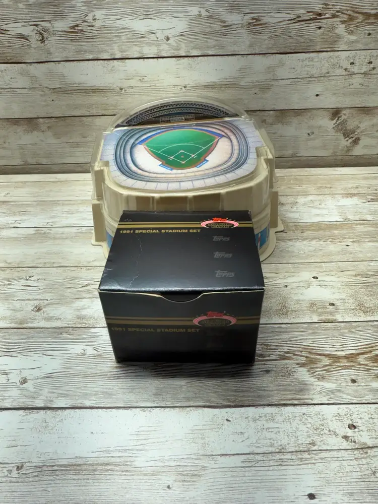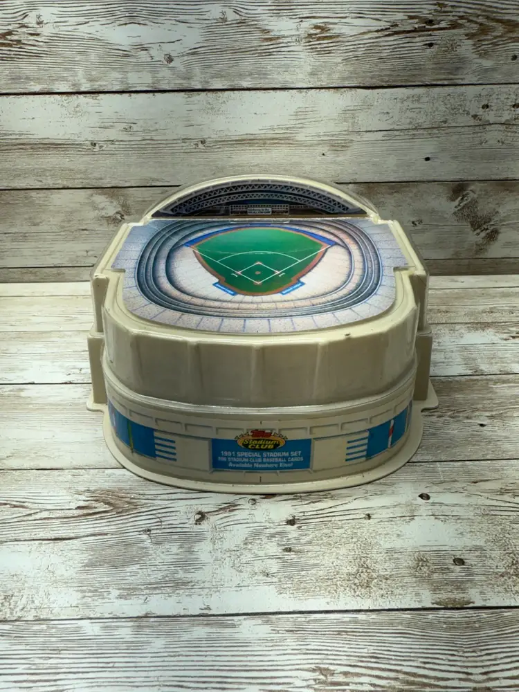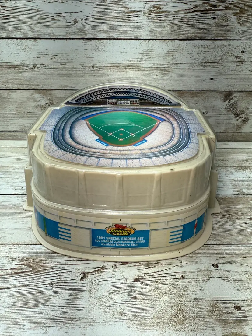 Key Features: • 1991 Topps Stadium Club Special Stadium Set – Complete • Includes all 200 baseball cards in original case • Exclusive issue, available only through stadium-shaped display • Features stars like Ken Griffey Jr., Nolan Ryan, and Frank Thomas • Plastic stadium display case approx. 11” wide • Original inner card box included for protection and display