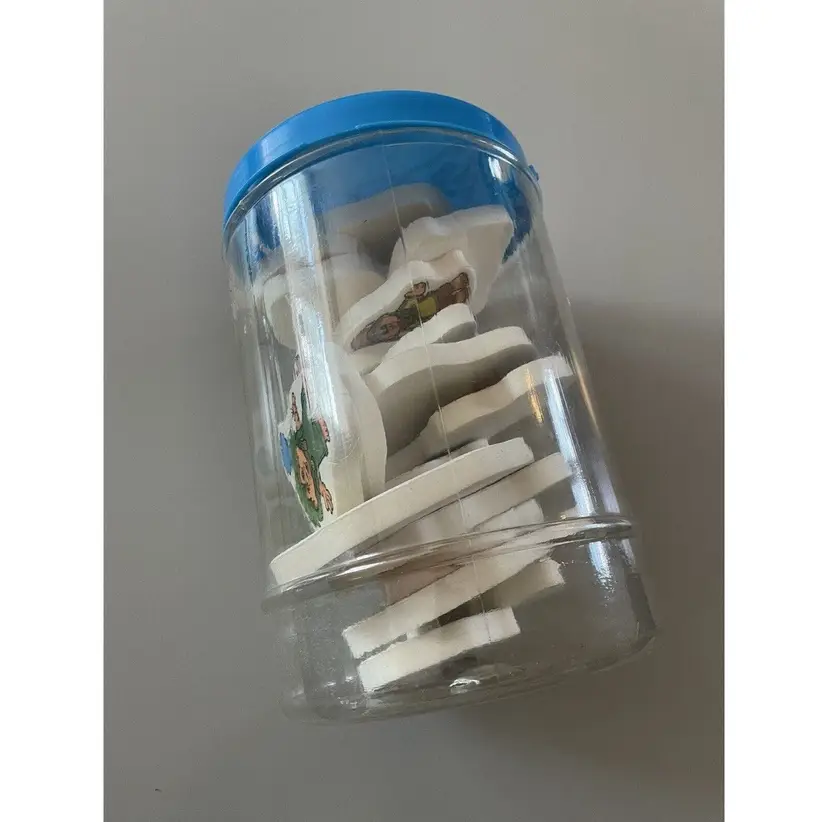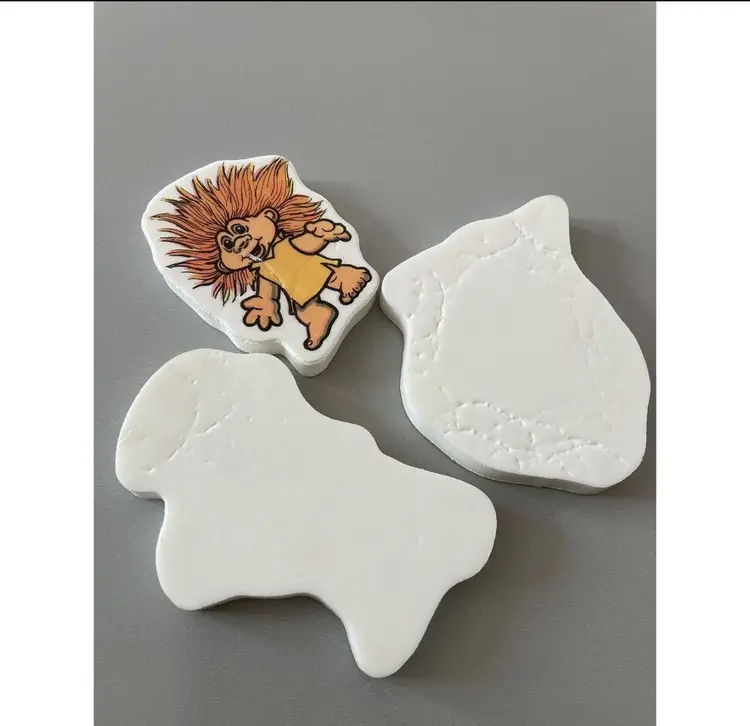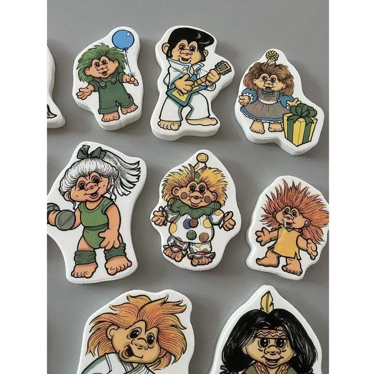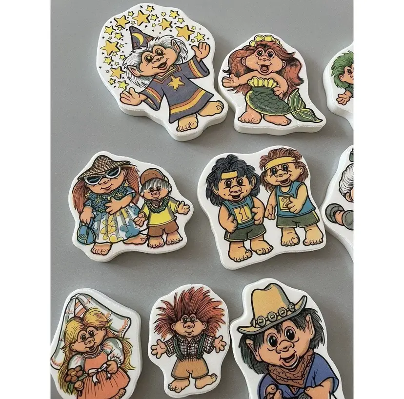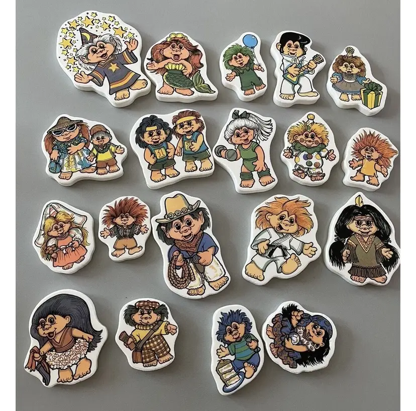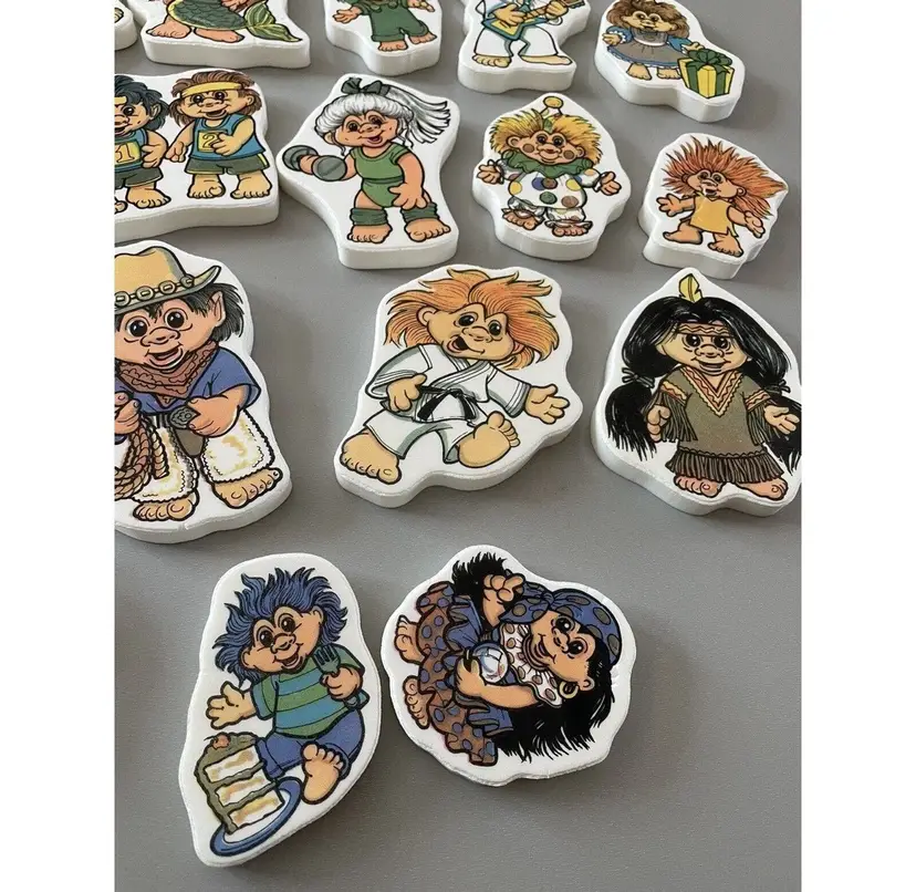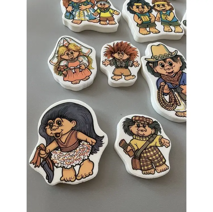 1992 Colorforms #3328 Norfin Troll Color Foams - Tub Bath Toys 19 Pieces. With original tub. Some chew marks on a few. Good condition otherwise. Come as seen in pictures.