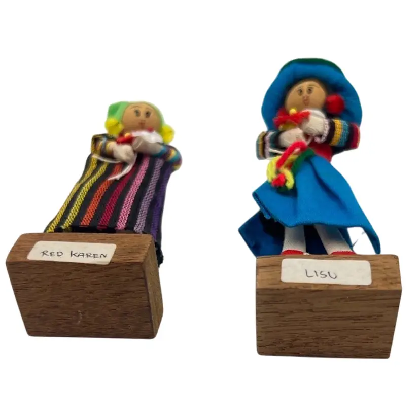 2 FOLK ART WOOD DOLL PERUVIAN/GUATEMALAN