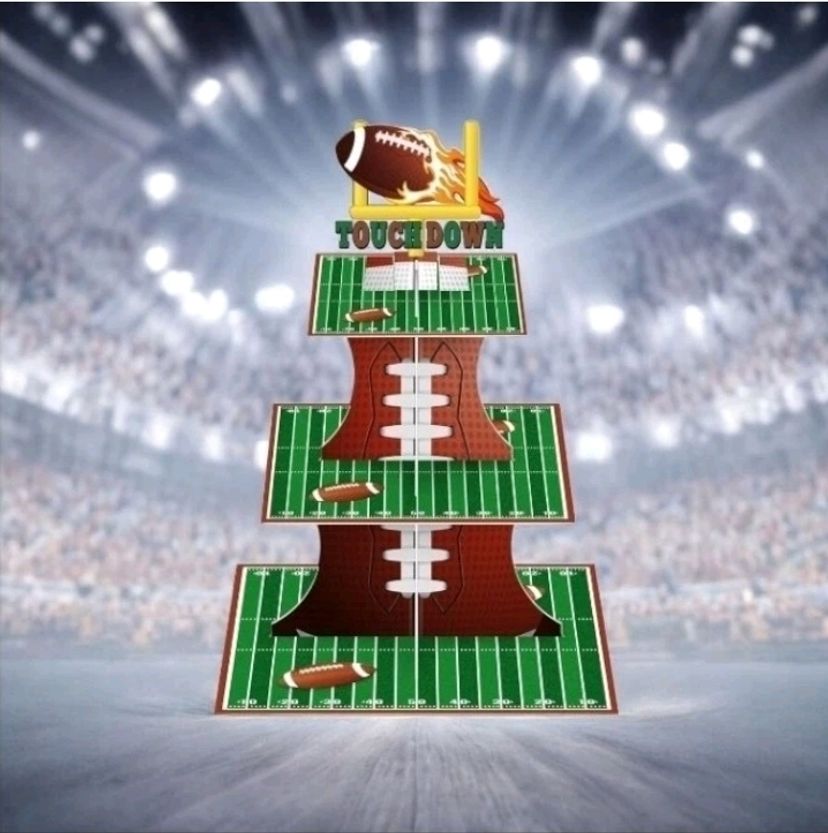 THIS LISTING IS FOR TWO (2) 3 TIER CARDBOARD CUPCAKE STANDS, THAT ARE FOOTBALL THEMED. BOTH ARE NEW AND UNUSED. PLEASE LOOK AT ALL PHOTOS, THEY ARE OF THE ACTUAL ITEMS YOU WILL RECEIVE.