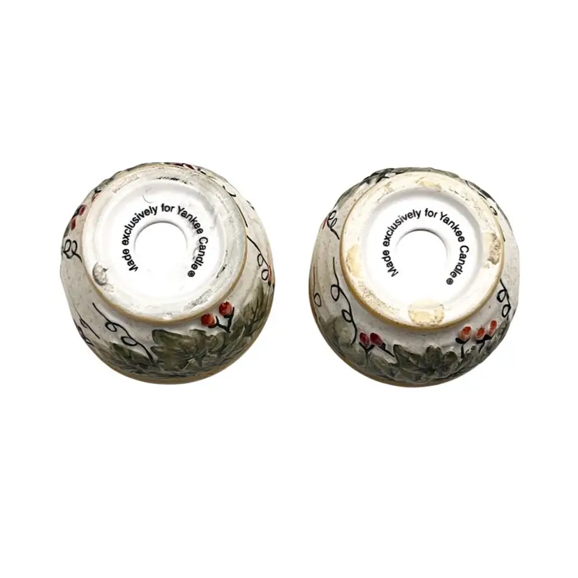 👉 2.25x1.75” Porcelain “Ivy & Berries” Pattern 👉Holiday Christmas 👉No Chips or Cracks 👉 Review Photos for Best Condition Description 👉Sold as Shown FUN FACT: the Yankee candle company was created by Michael Kittredge after his neighbors expressed interest in the scented candle that he made from melted crayons as a gift for his mother titled “Christmas 1969” The company is now owned by Newell, who also owns Rubbermaid.
