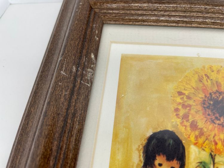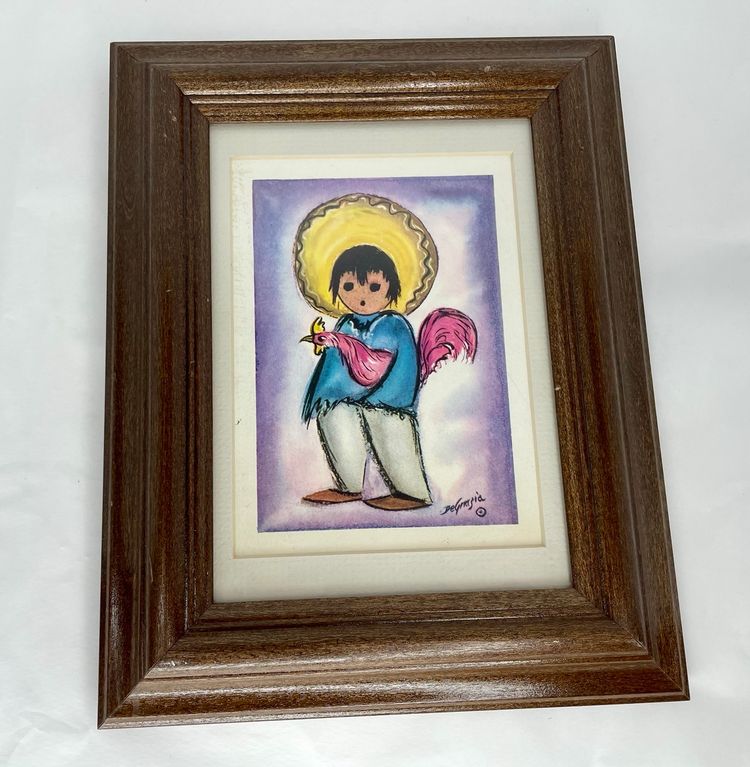 Boy with rooster was origin painted in the 1950s. Most likely framed in the 1980s.