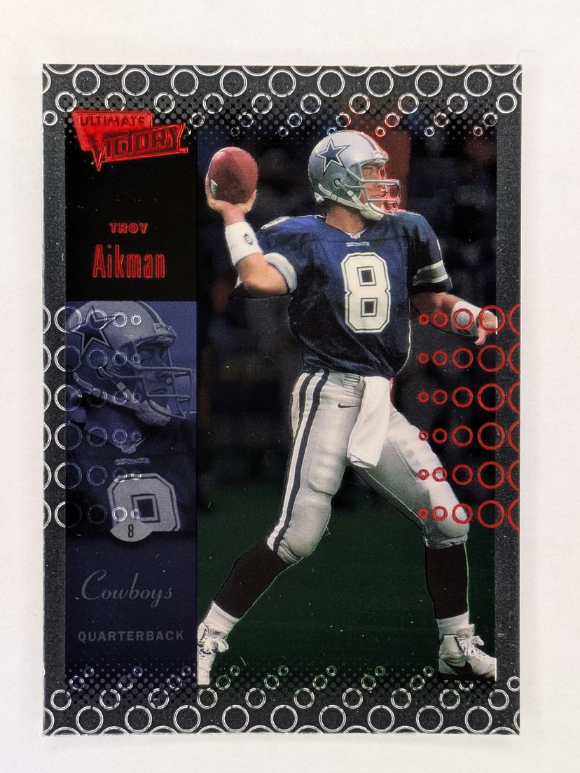 This 2000 Upper Deck Ultimate Victory #25 card highlights Hall of Famer Troy Aikman, the leader of the Dallas Cowboys dynasty of the 1990s.