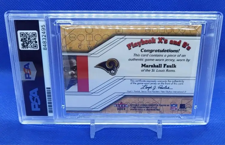 2002 Fleer Maximum Game Used Jersey Auto Marshall Faulk PSA