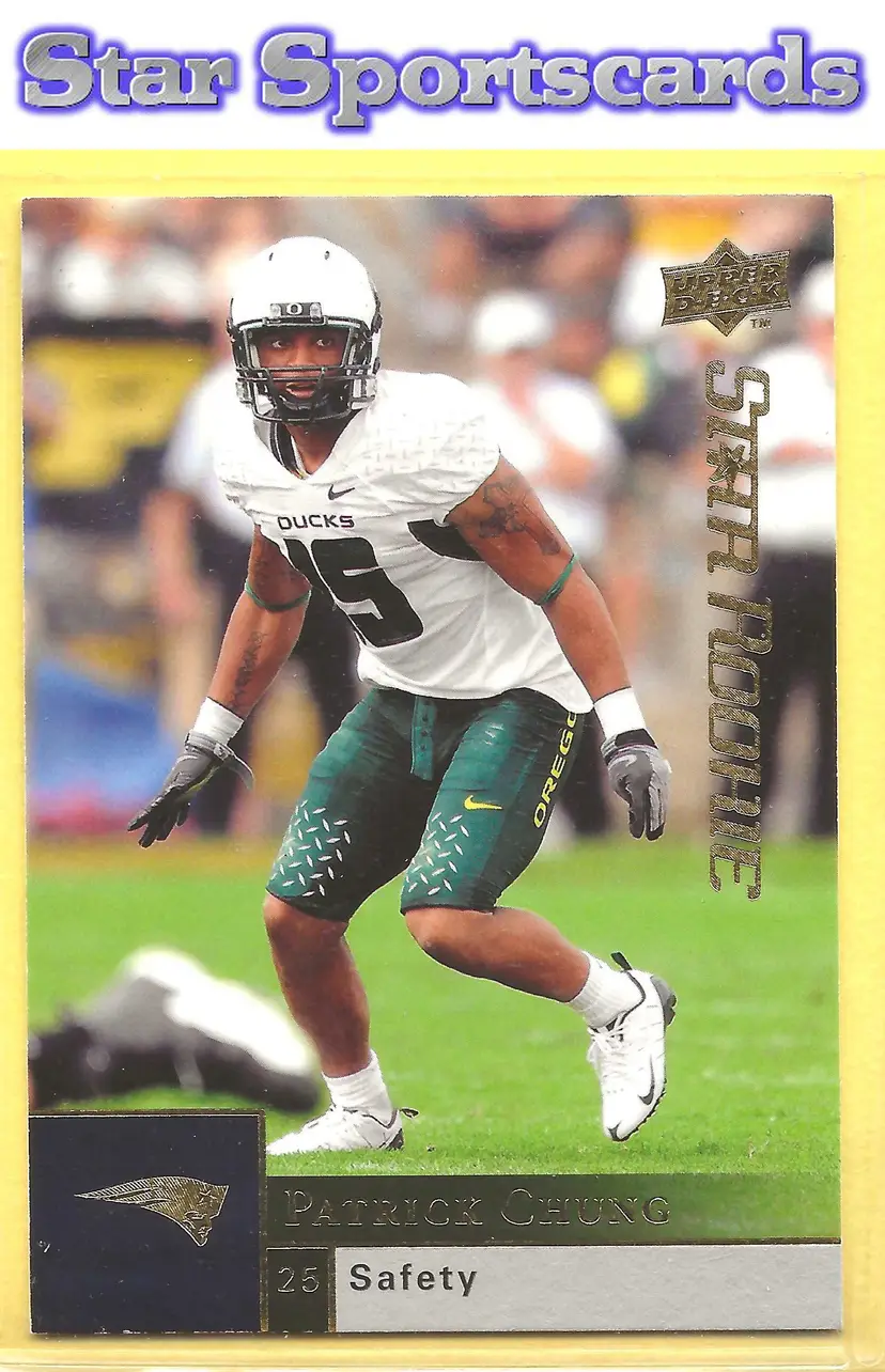 This is a nice example of a 2009 Upper Deck #225 Patrick Chung .Other important information about this card: RC Rookie In Patrick Chung played for the New England Patriots.Please check out our other listings for more great cards.