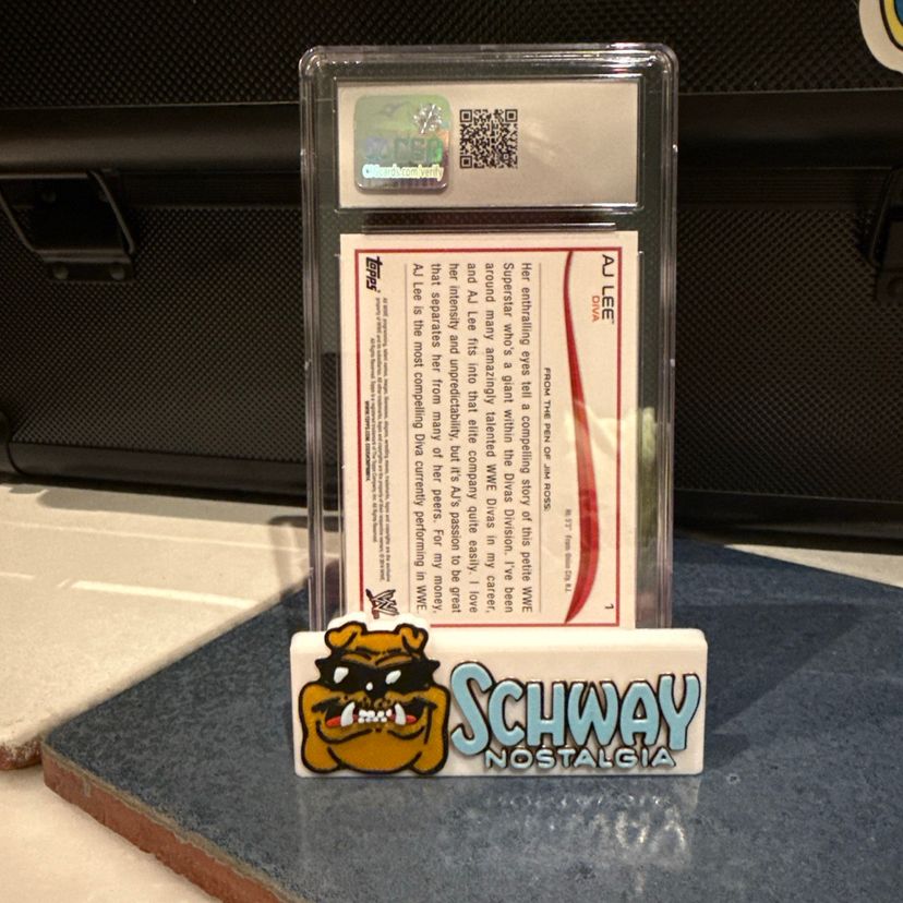 The product is a highly collectible 2014 Topps WWE AJ Lee #1 trading card. This card features the wrestler AJ Lee and has been professionally graded as a CSG 9 by Card Security Grading. It is a sought-after item for wrestling fans and collectors alike, representing the 2014 season in the sports trading card market.