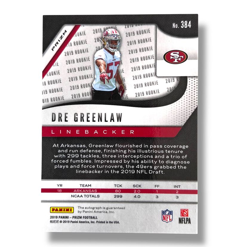 Here We Have a 2019 Panini Prizm Dre Greenlaw Neon Green Pulsar Prizm RC Auto