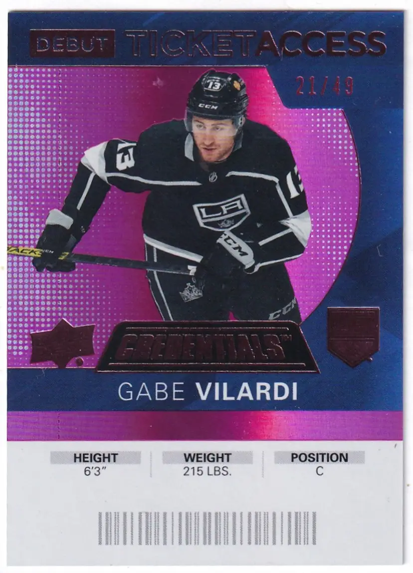2020-21 Upper Deck Credentials Pink #136 Gabe Vilardi Los Angeles Kings Print Run - 49