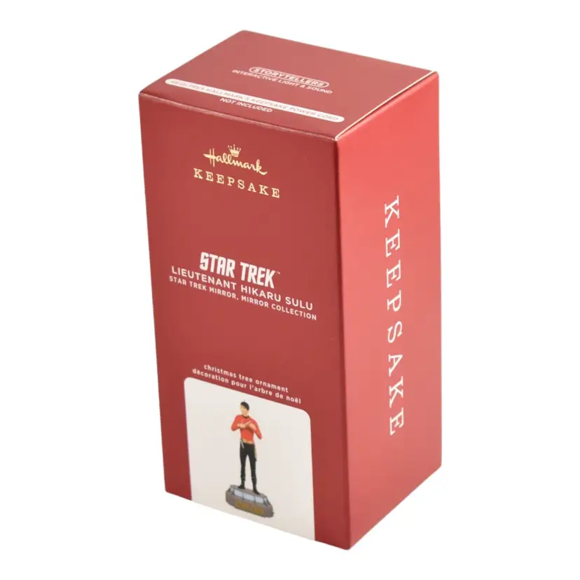 This Hallmark Keepsake ornament depicts Lieutenant Hikaru Sulu from the classic Star Trek "Mirror, Mirror" series. Crafted by artist Jake Angell, this collector's piece tells a story while doubling as a festive decoration. Ideal for commemorating Star Trek’s legacy, it combines incredible detail, tradition, and advanced technology for a unique holiday experience. Press the button to Relive the original "Mirror, Mirror" episode of Star Trek. Storytellers ornament plays a sound and light show when connected to Hallmark's Keepsake Power Cord (not included) - No batteries necessary. Join with the other storytellers in the collection (Sold Separately).