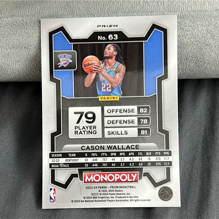 2023-24 PRIZM MONOPOLY CASON WALLACE RC PURPLE WAVE
