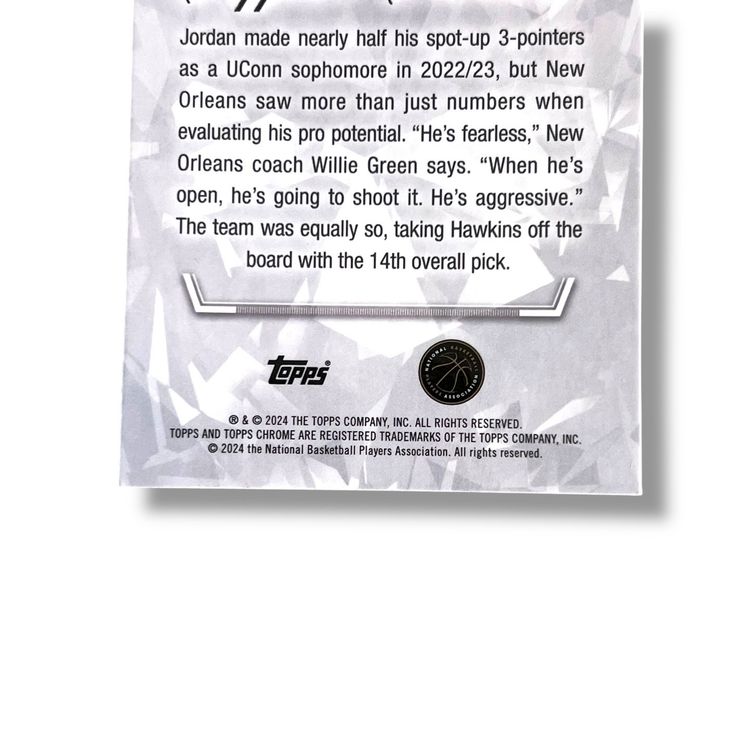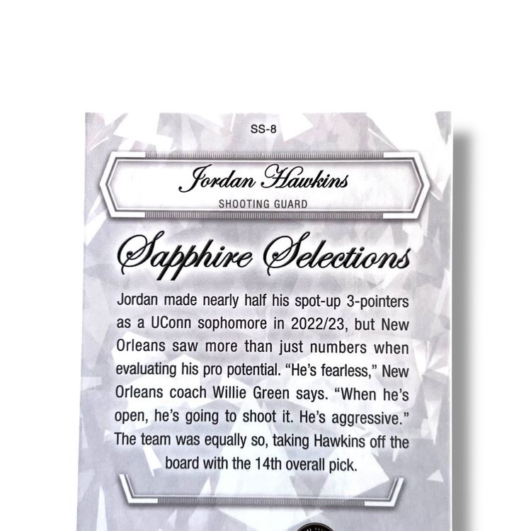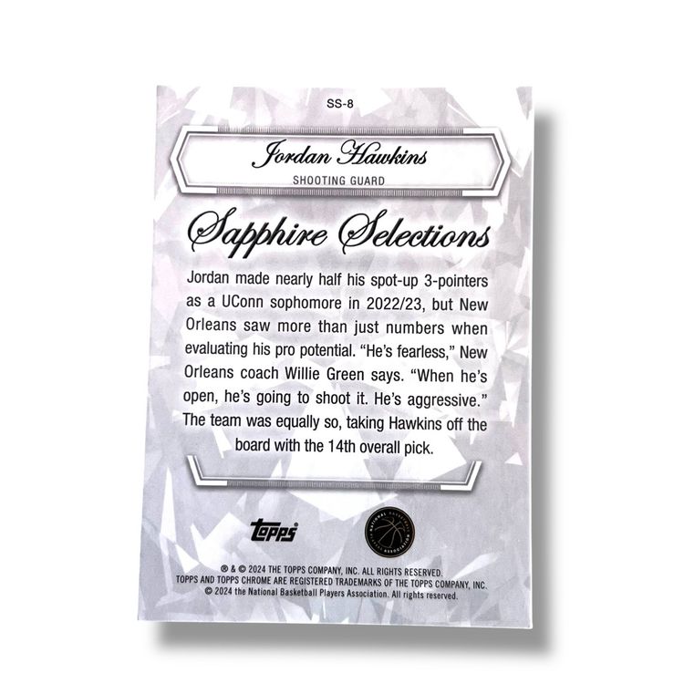 Here We Have a 2023-24 Topps Chrome Sapphire Jordan Hawkins Selections RC #SS-8