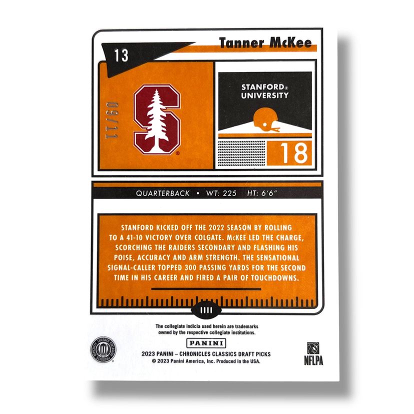 Here We Have a 2023 Panini Chronicles Classics Tanner McKee Cracked Ice 9/11