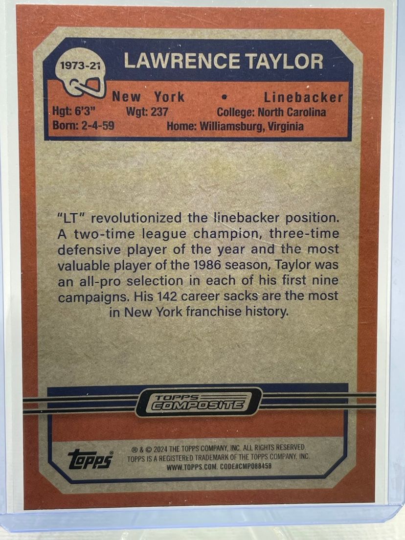 2023 Topps Composite 1973 Football Chrome Lawrence Taylor Blue Wave /75 SSP