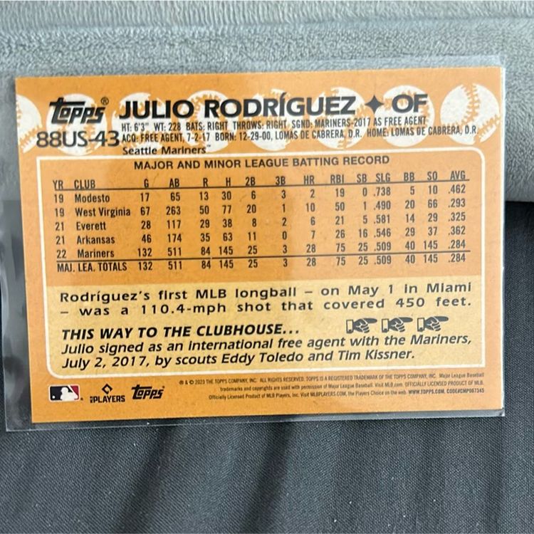 2023 Topps Update Julio Rodriguez 1988 Insert Card Gold Cup #88US-43 - Mariners
