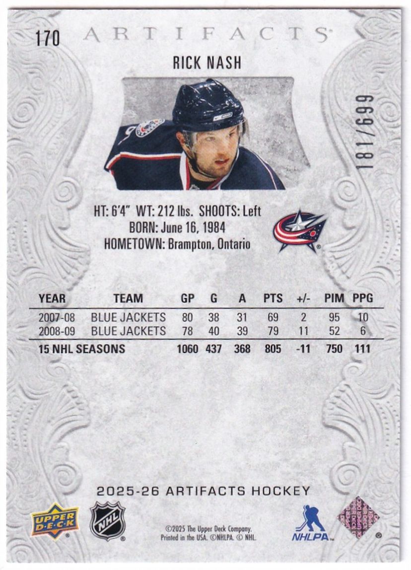 2025-26 Artifacts #170 Rick Nash Columbus Blue Jackets Print Run - 699