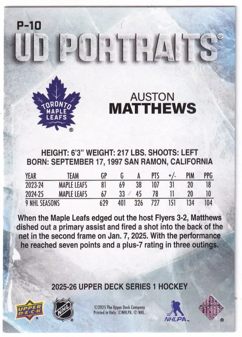 2025-26 Upper Deck UD Portraits #P10 Auston Matthews Toronto Maple Leafs
