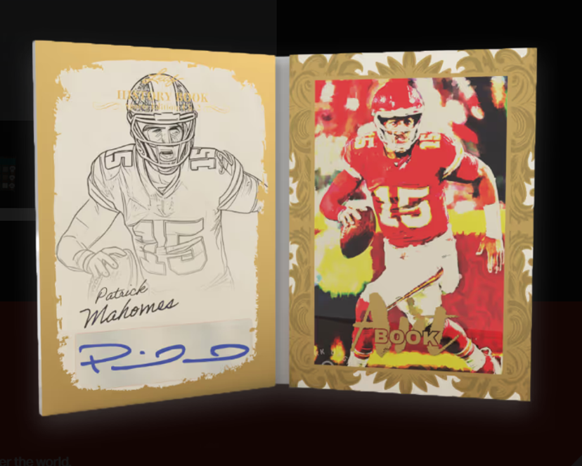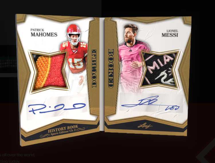 Look for five to six multi-signed booklet cards in every case. Look for three autographs on average per case from the following names: Aaron Judge, Patrick Mahomes, Bobby Witt Jr., Charles Barkley, Giannis Antetokounmpo, Conor McGregor, Lionel Messi, Peyton Manning, Stephen Curry, Paul Skenes, Nolan Ryan, Bo Jackson, Larry Bird, Floyd Mayweather Jr., Bob Cousy, and Barry Sanders. Look for amazing triple panel booklet featuring amazing combinations such as: Babe Ruth / Roger Maris / Aaron Judge.Vince Lombardi / Bill Parcells / Andy Reid. Babe Ruth / Joe DiMaggio / Mickey Mantle.