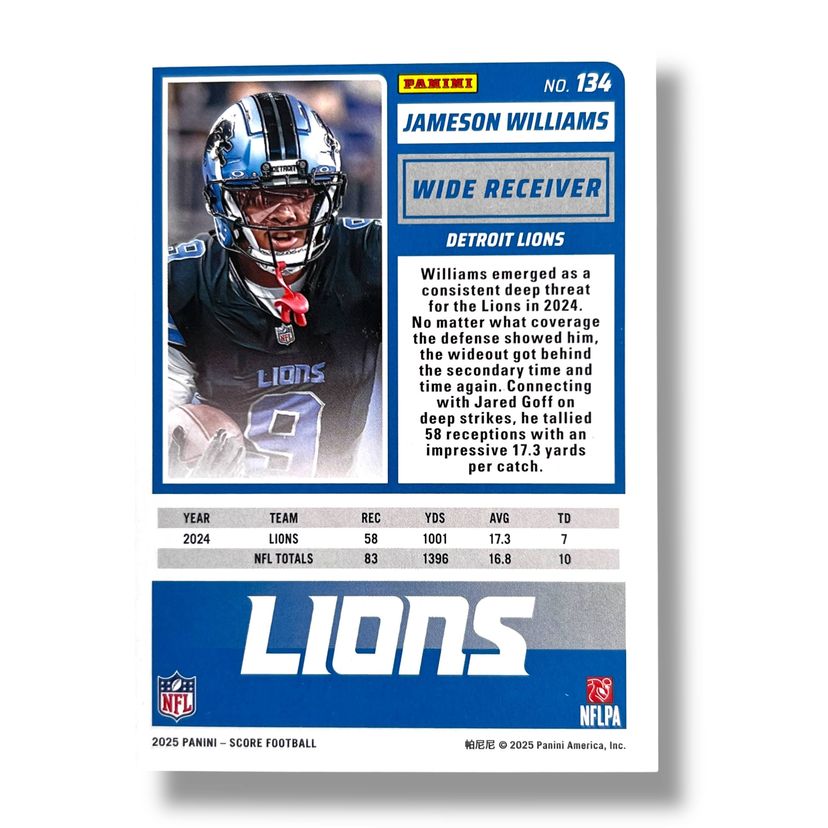 Here We Have a 2025 Panini Score Jameson Williams Extraterrestrial SSP Case Hit #134