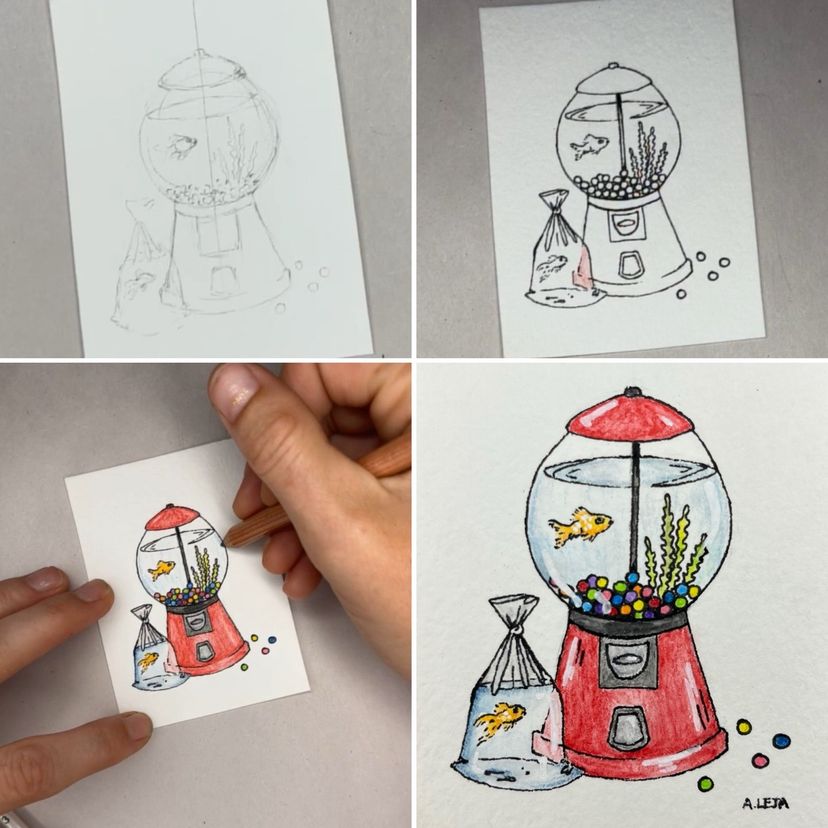 “25 Cent Sushi” 3.5” x 2.5” Watercolor, marker on paper