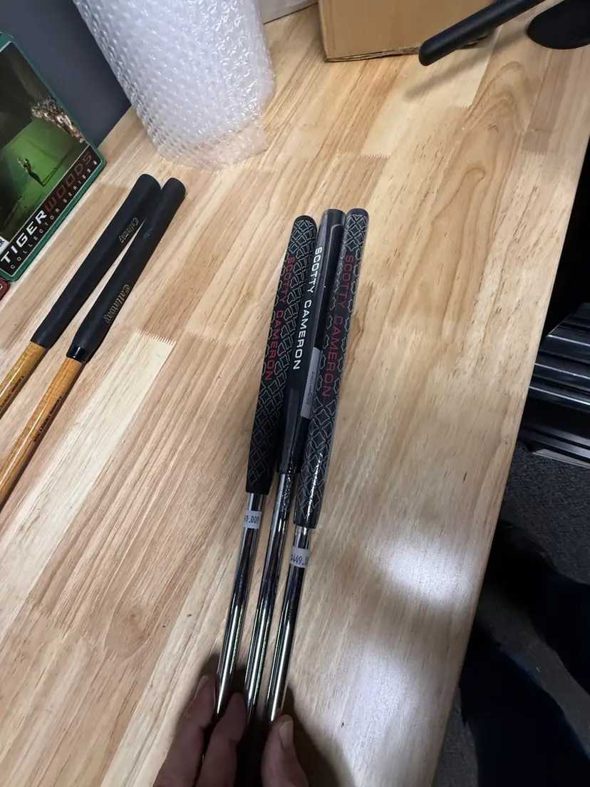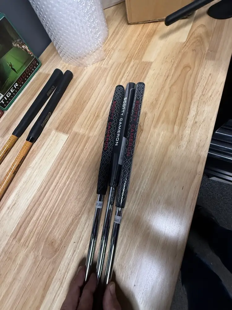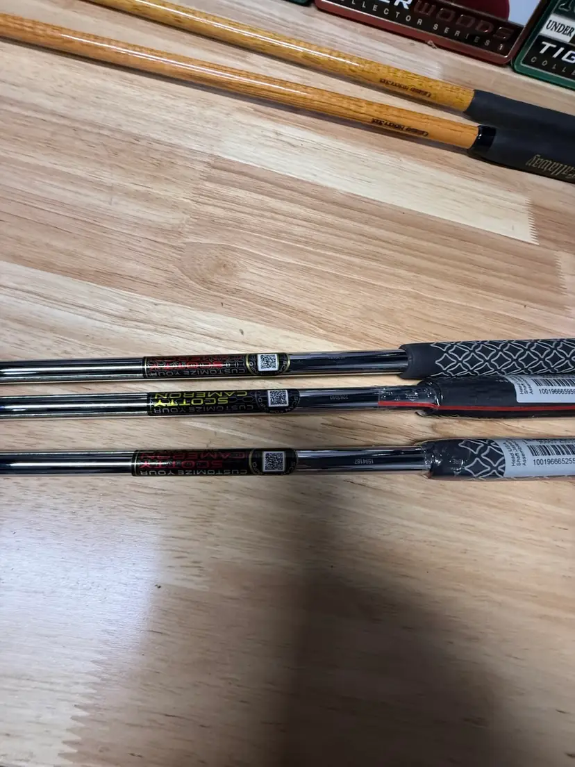 3, Scotty Cameron Shaft Pulls With Grips All pulled from 35” plumbers/L-neck Scottys Two grips still in plastic