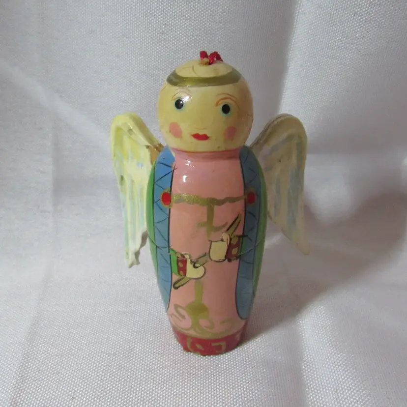 Each ornament was gently used each year on our Christmas tree Handmade Lace Angel 5.5" x 5.5" Tall wooden Angel - 3" x 2" Paper Angel - 2" x 1.75"