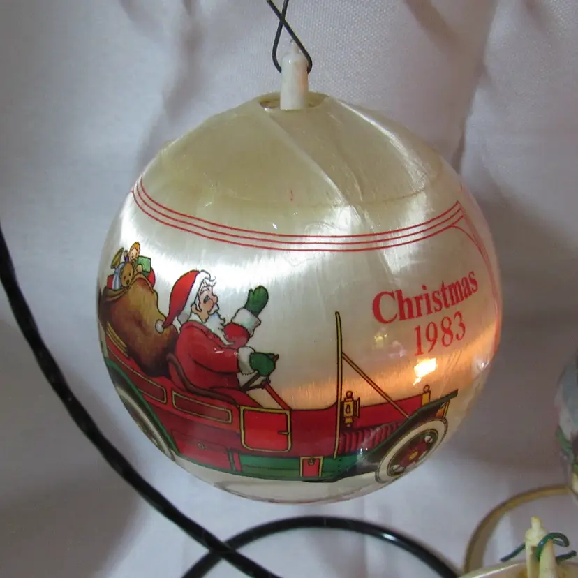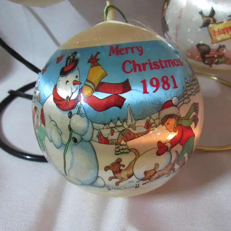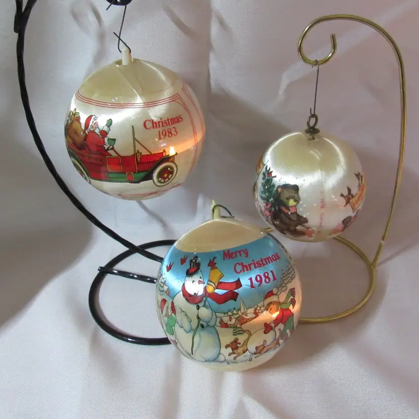1983 Christmas w/Santa in Antique Car Approx 3 1/2" 1981 Christmas w/Boy Building Snowman Approx 3 1/2" Undated Merry Christmas/Happy New Year Approx 2 3/4'
